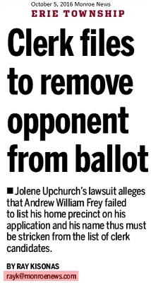 Monroe News November 9, 2016; "GOP Gains County Board Seats" (Greg Moore Jr. Defeats Mark Ellsworth)
